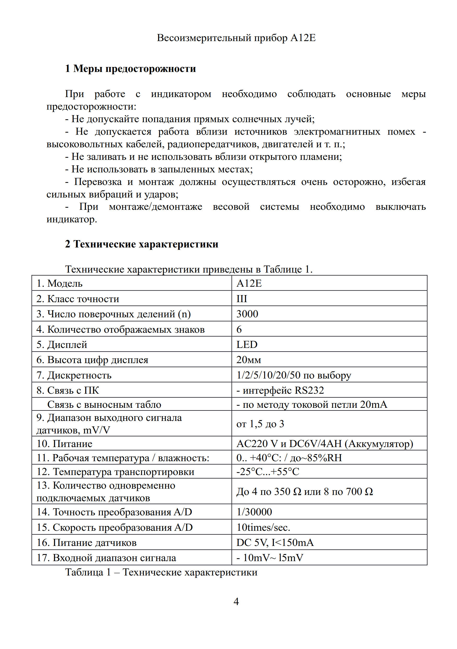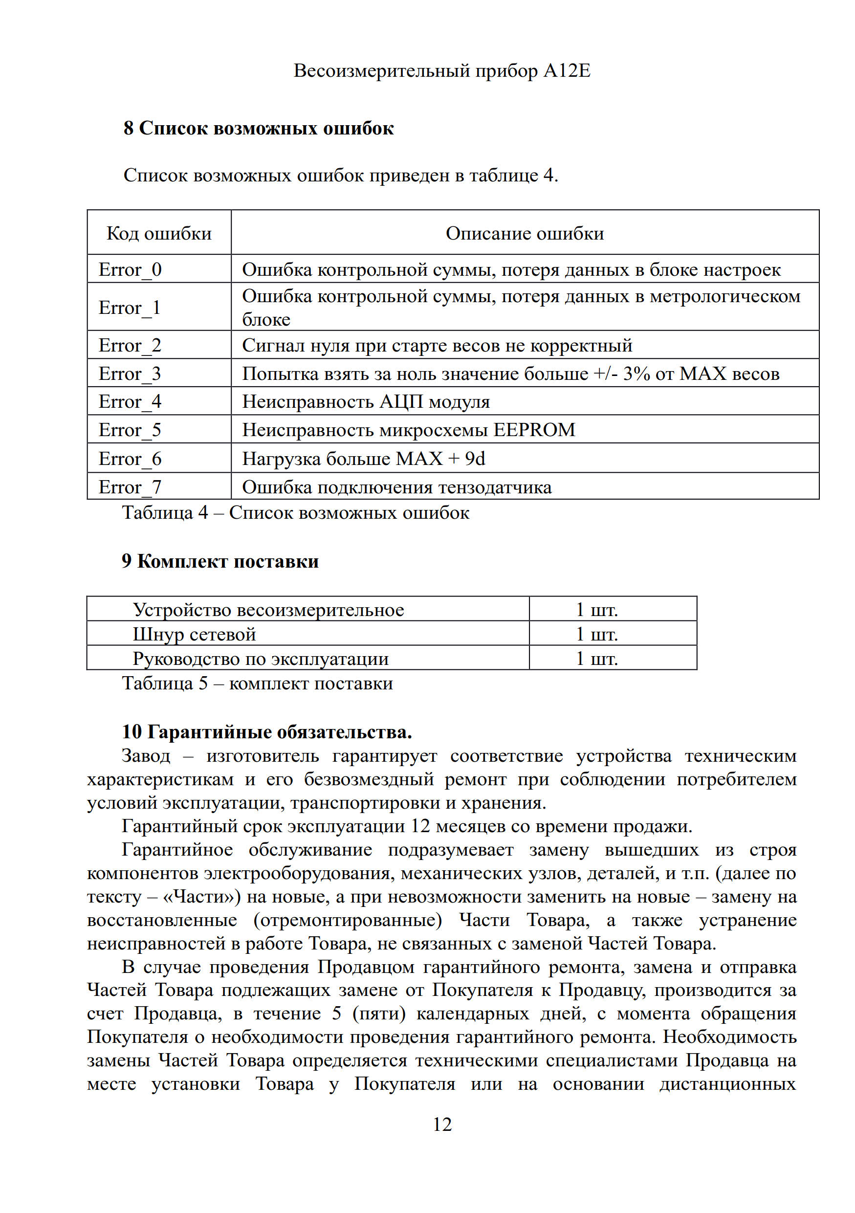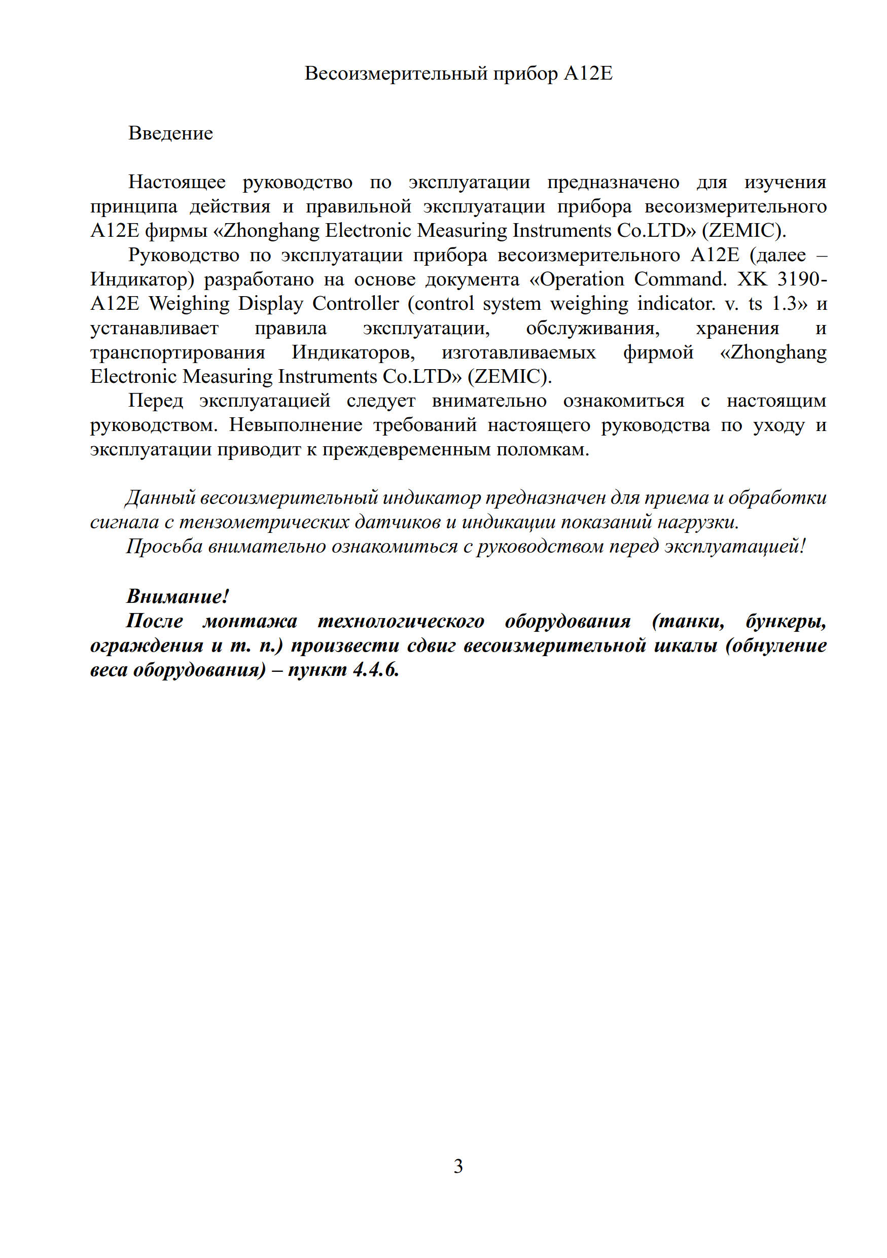 Руководство по эксплуатации на весоизмерительный прибор А12Е